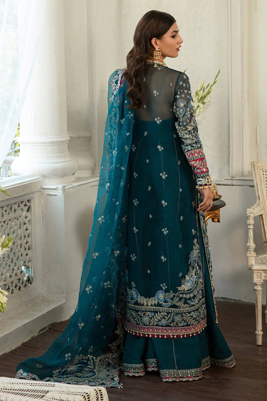 - Embroidered Hand Embellished Front Right Panel (Organza) 1Pc